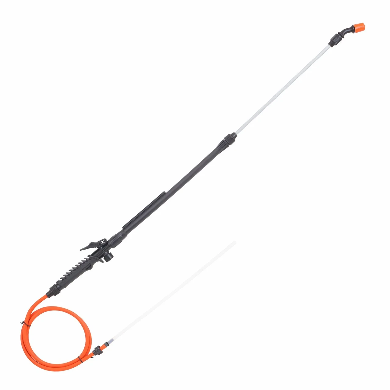 Брандспойт состоит из 2 трубок, ручки, шланга и распылительного узла на конце. Тип распыления регулируется от струи до мелких брызг. Длина брандспойта от 650 мм до 970 мм.